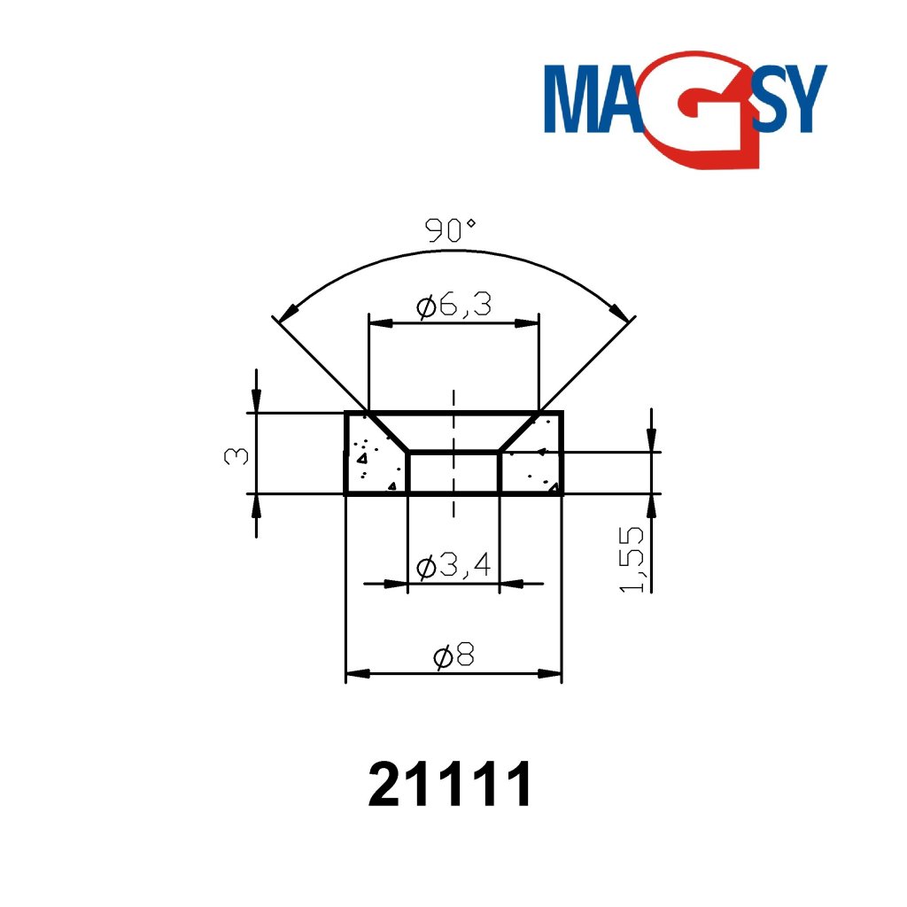 Неодимов магнит цилиндър с отвор за болт с фрезенкова глава диам.8 x 6/3,4 x 3-M3-N-80 °C, VMM4-N35